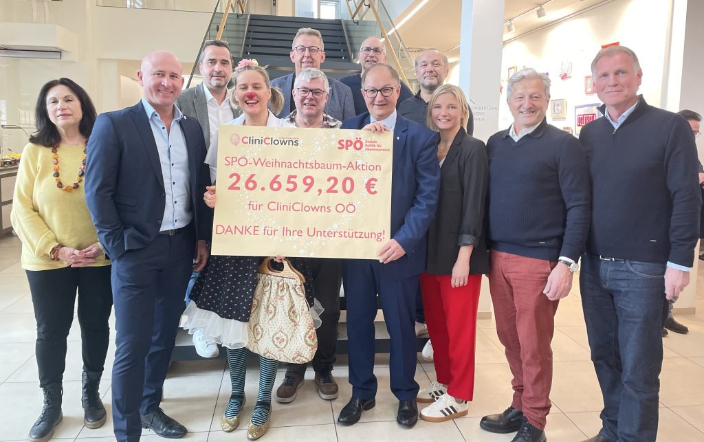 Bereits zum vierten Mal beteiligte sich die SPÖ-Feldkirchen an der Weihnachtsbaumaktion, die diesmal ging der Erlös zugunsten der CliniClowns. Dabei wurde die beachtliche Gesamtsumme von € 26.659,20 an Spendengeldern gesammelt. Die Sammelaktion ist zwar bereits offiziell beendet, es langen aber noch immer spendengelder ein. In allen bisher stattgefundenen Weihnachtsbaumaktionen sammelte die SPÖ-OÖ bereits mehr als € 150.000. Wie sagen ein großes Dankeschön an alle Spenderinnen und Spender.